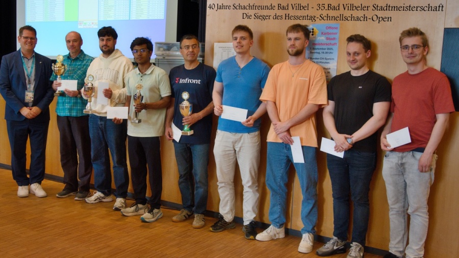 Die Bad Vilbeler Schachfreunde 1985 e.V. laden herzlich ein zur Offenen Bad Vilbeler Stadtmeisterschaft, die in diesem Jahr als Schnellschach- Open im Rahmen des Hessentages in unserer Stadt veranstaltet wird.